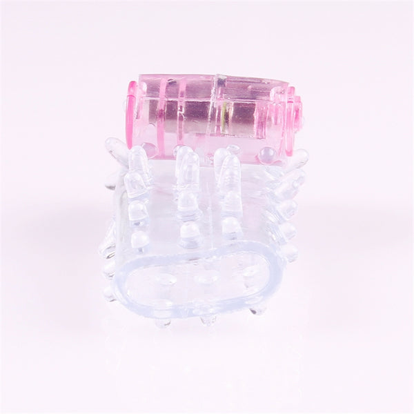 Semi funda anillo de silicona con textura, mejora la erección e incluye vibrador que estimula el clítoris.